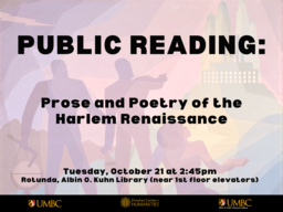 We invite you to read selections of prose and poetry from various writers of the Harlem Renaissance. Samples will be provided, however, readers are encouraged to bring any selections of their choosing.